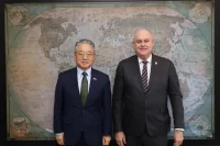 Una reunión de trabajo sostuvo este viernes el ministro de Relaciones Exteriores encargado, Carlos Guevara Mann, con el embajador de la República de Corea, Han Byoung Jin, en la que abordaron temas de la agenda bilateral y multilateral.