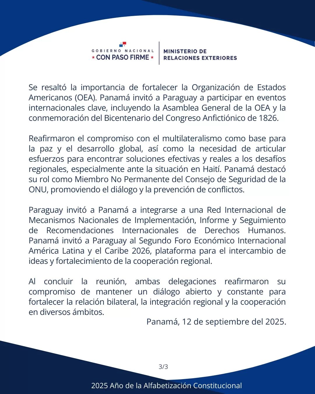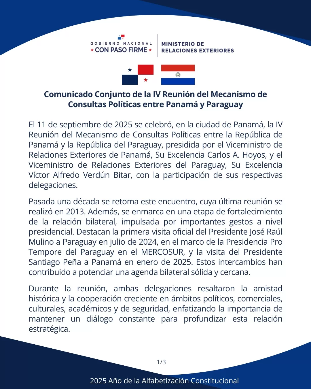 Panamá y Paraguay consolidan relación estratégica y proyectan nueva hoja de ruta en cooperación
