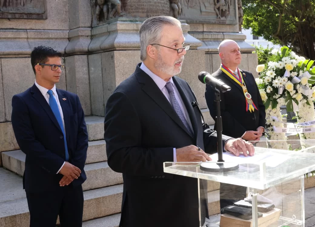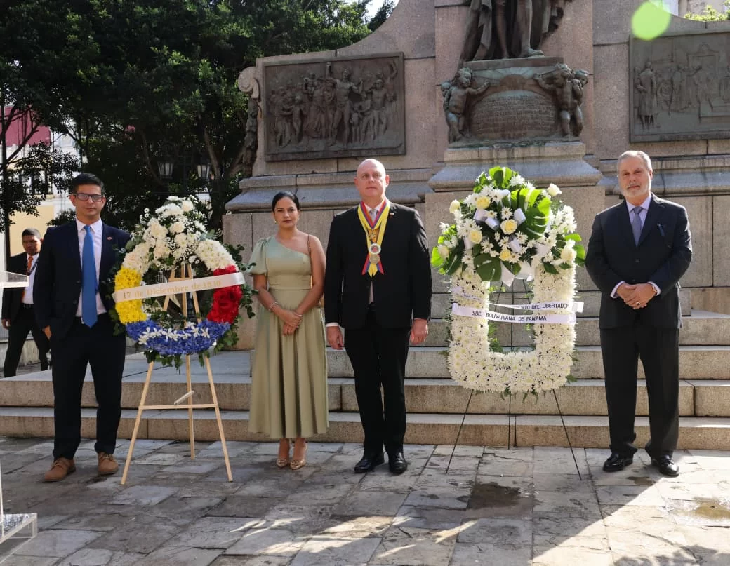 En la colocación de una ofrenda floral en la Plaza Bolívar, del Casco Antiguo, el primer vicepresidente de la Sociedad Bolivariana, Enrique De Obarrio, convocó a reflexionar sobre la libertad, la república y la convivencia entre los pueblos, y la relevancia del Congreso Anfictiónico de Panamá de 1826, como cuna del multilateralismo americano.