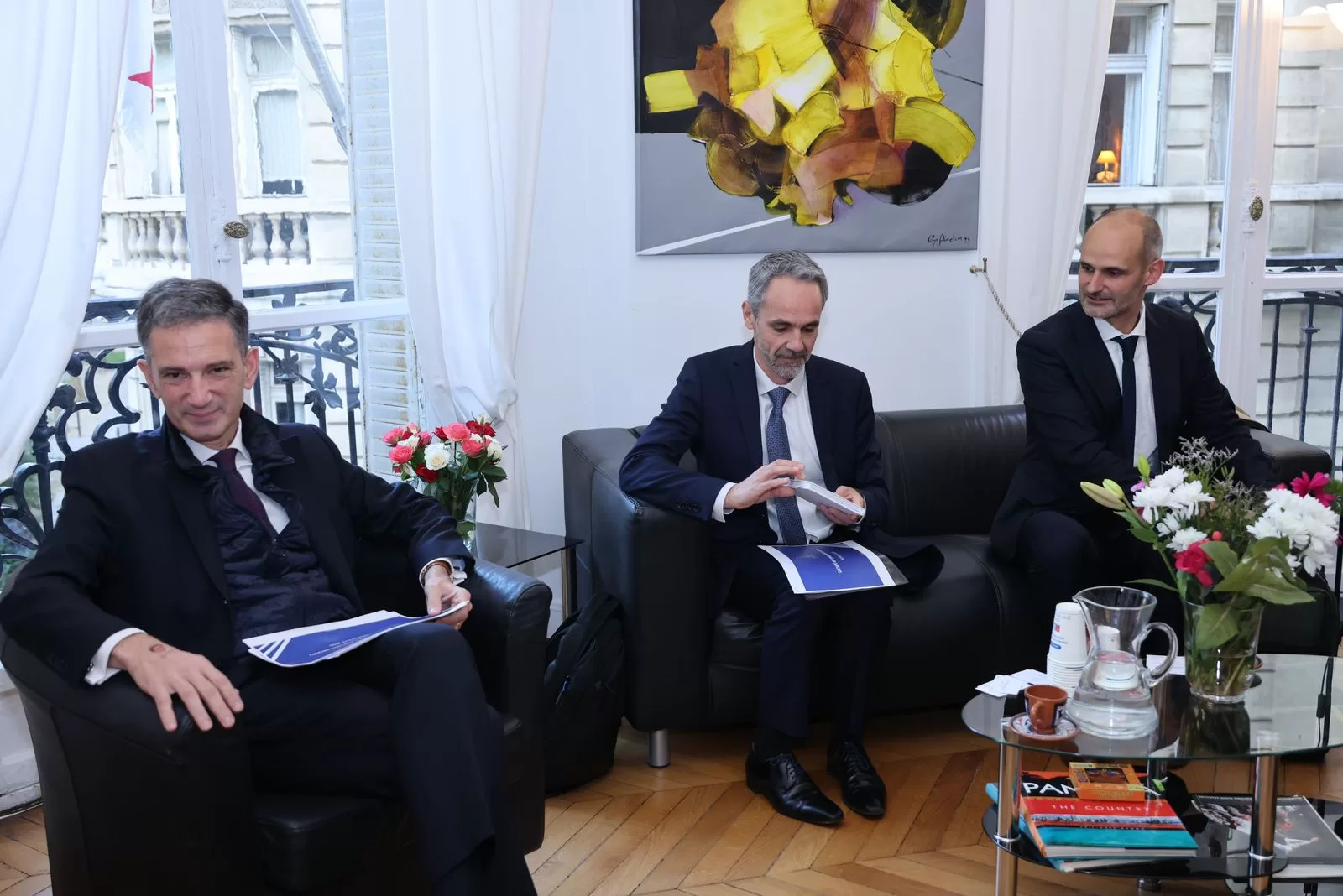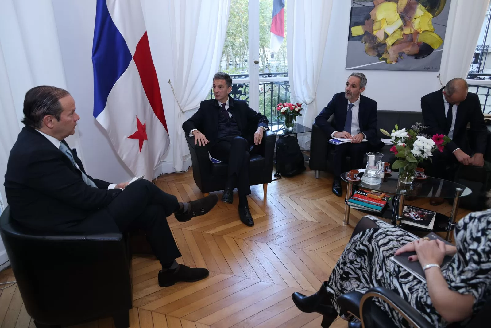 El ministro de Relaciones Exteriores Javier Martínez-Acha Vásquez, se reunió en París con Xavier Hurstel, director de Relaciones Económicas e Internacionales y Emmanuel Coste, director de Desarrollo Ofertas e Inversiones Corporación del Gruope ADP, líder mundial en operaciones aeroportuarias, en la parte final de su gira europea que lo llevó a Países Bajos, España y Alemania y que concluyó en Francia.