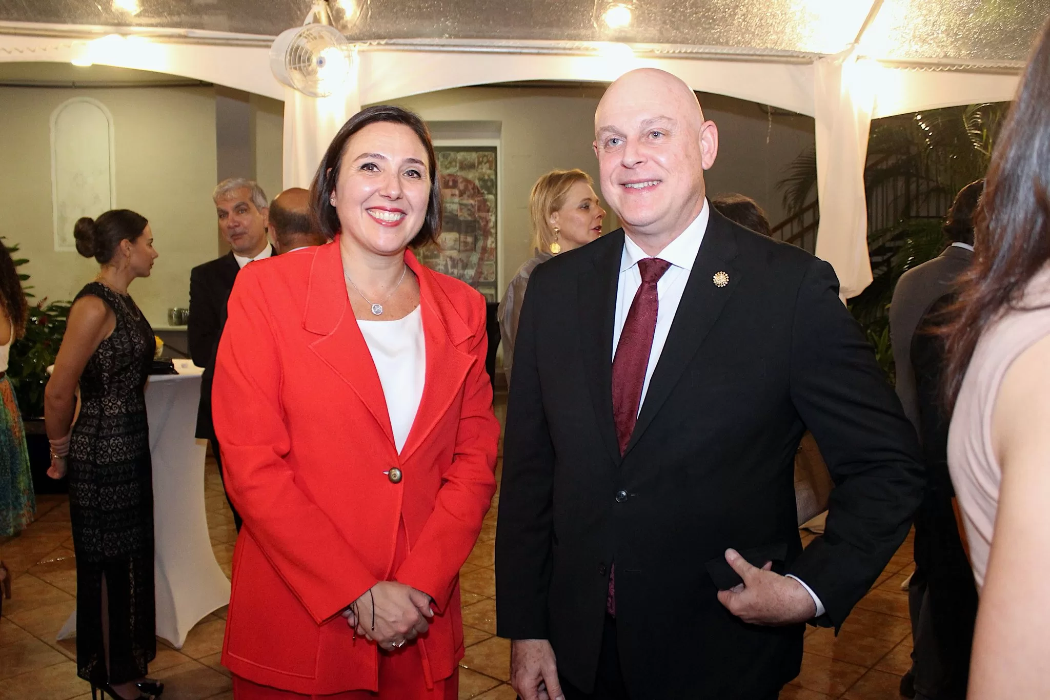 La embajadora Giuditta Giorgio, representante de Italia en Panamá, junto al ministro de Relaciones Exteriores, Javier Martínez-Acha Vásquez, encabezaron la cena a la que asistieron representantes de instituciones panameñas e italianas, del mundo de la empresa, la cultura y la educación.