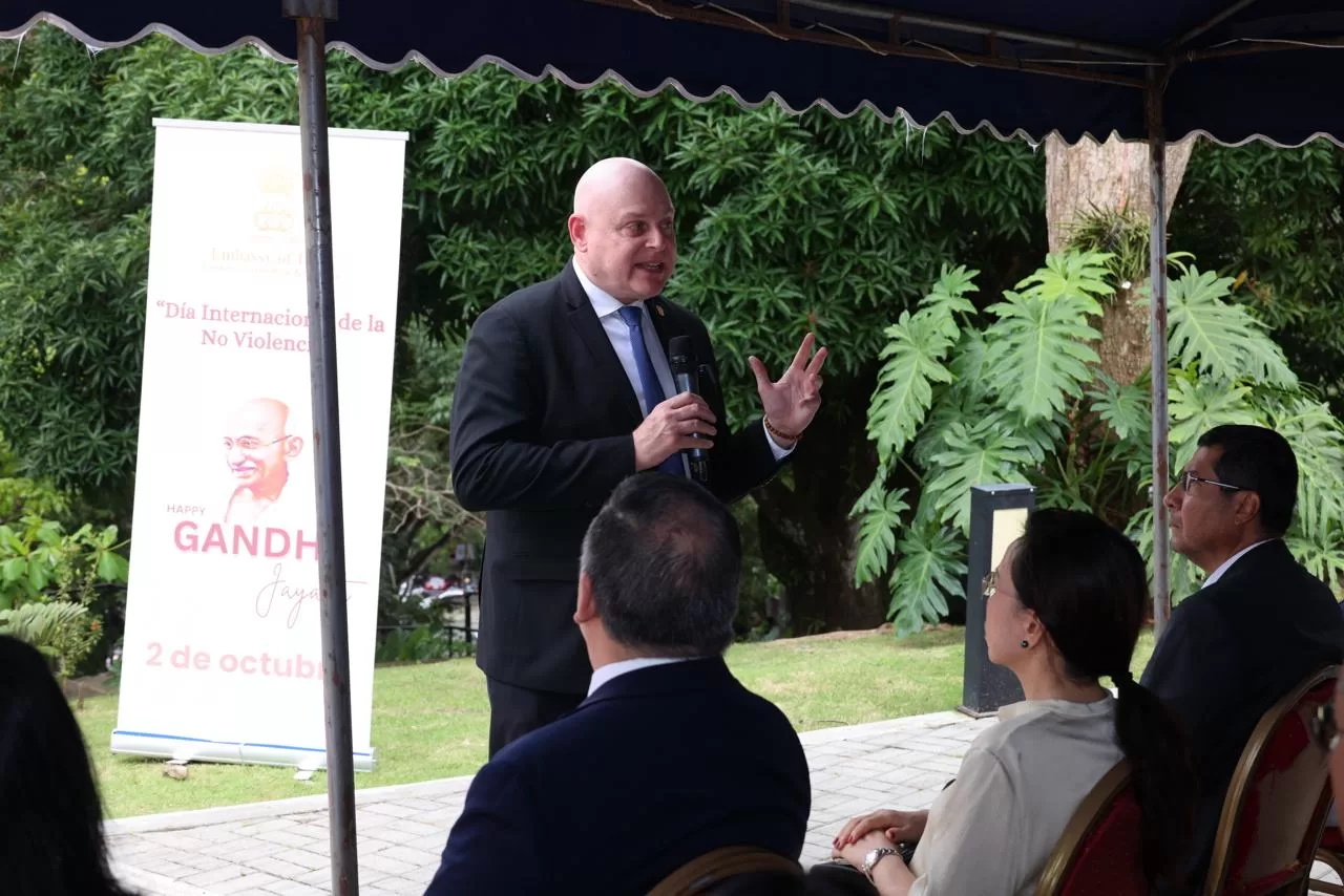 El ministro encargado Guevara Mann resaltó que Mahatma Gandhi uno de los personales más influyentes del siglo XX a través de su filosofía de la no violencia y la resistencia pacífica, influyó en millones de personas y puso en marcha la descolonización, uno de los movimientos más transformadores de la historia, demostrando que a través de la no violencia se podía enfrentar la injusticia y la opresión, enseñanzas que permanecen hasta la actualidad.