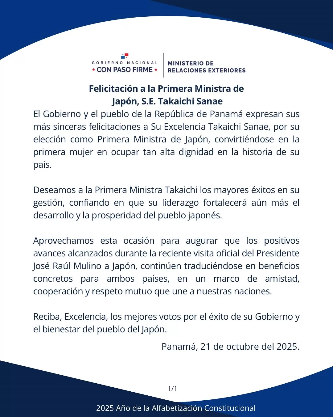 Comunicado Edgardo Dominguez2025-10-22T10:01:05-05:0021 de octubre de 2025| Comparte esta noticia en tus redes FacebookXWhatsAppCorreo electrónico Artículos relacionados Corea participará en celebración del Bicentenario del Congreso Anfictiónico Galería Corea participará en celebración del Bicentenario del Congreso Anfictiónico 20 de febrero de 2026 “Geometrías de la Imaginación” marca el regreso de Bassan al Museo de las Américas Galería “Geometrías de la Imaginación” marca el regreso de Bassan al Museo de las Américas 20 de febrero de 2026 Promueven relaciones académicas, culturales y económicas con Türkiye Galería Promueven relaciones académicas, culturales y económicas con Türkiye 19 de febrero de 2026 Cancillería participa en conmemoración del natalicio del Emperador de Japón Galería Cancillería participa en conmemoración del natalicio del Emperador de Japón 14 de febrero de 2026