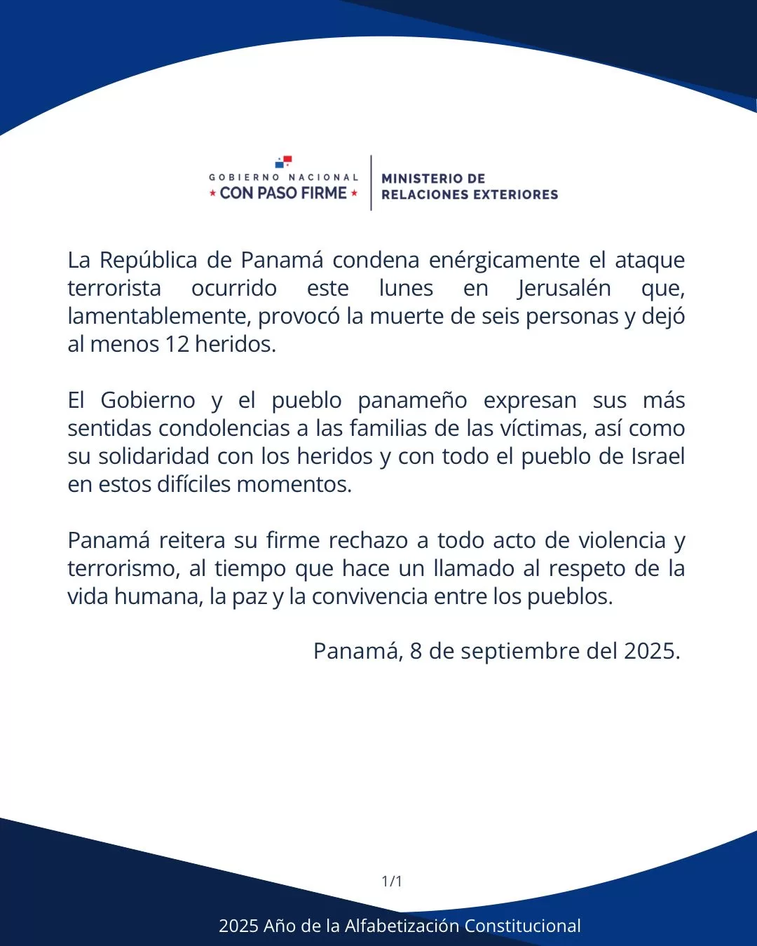 Comunicado Oficial jbagonzalez2025-09-08T20:36:01-05:008 de septiembre de 2025| Comparte esta noticia en tus redes FacebookXWhatsAppCorreo electrónico Artículos relacionados Estados del Caribe participan en encuentro cultural en Colón Galería Estados del Caribe participan en encuentro cultural en Colón 30 de enero de 2026 Canciller Martínez-Acha Vásquez expresa reconocimiento y respeto a la comunidad china Galería Canciller Martínez-Acha Vásquez expresa reconocimiento y respeto a la comunidad china 30 de enero de 2026 Tailandia analiza adhesión al Protocolo de Neutralidad del Canal Galería Tailandia analiza adhesión al Protocolo de Neutralidad del Canal 30 de enero de 2026 Ministro Martínez- Acha Vásquez sostiene reunión de alto nivel con Qatar Galería Ministro Martínez- Acha Vásquez sostiene reunión de alto nivel con Qatar 30 de enero de 2026