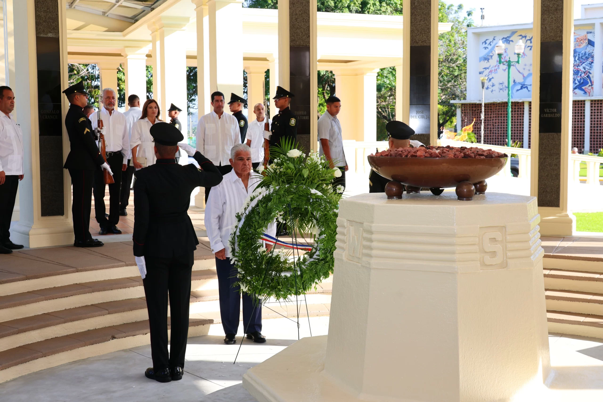 Momentos antes, el presidente José Raúl Mulino había depositado una ofrenda floral en el monumento de la llama eterna a los mártires del 9 de enero, en el Centro de Capacitación Ascanio Arosemena.