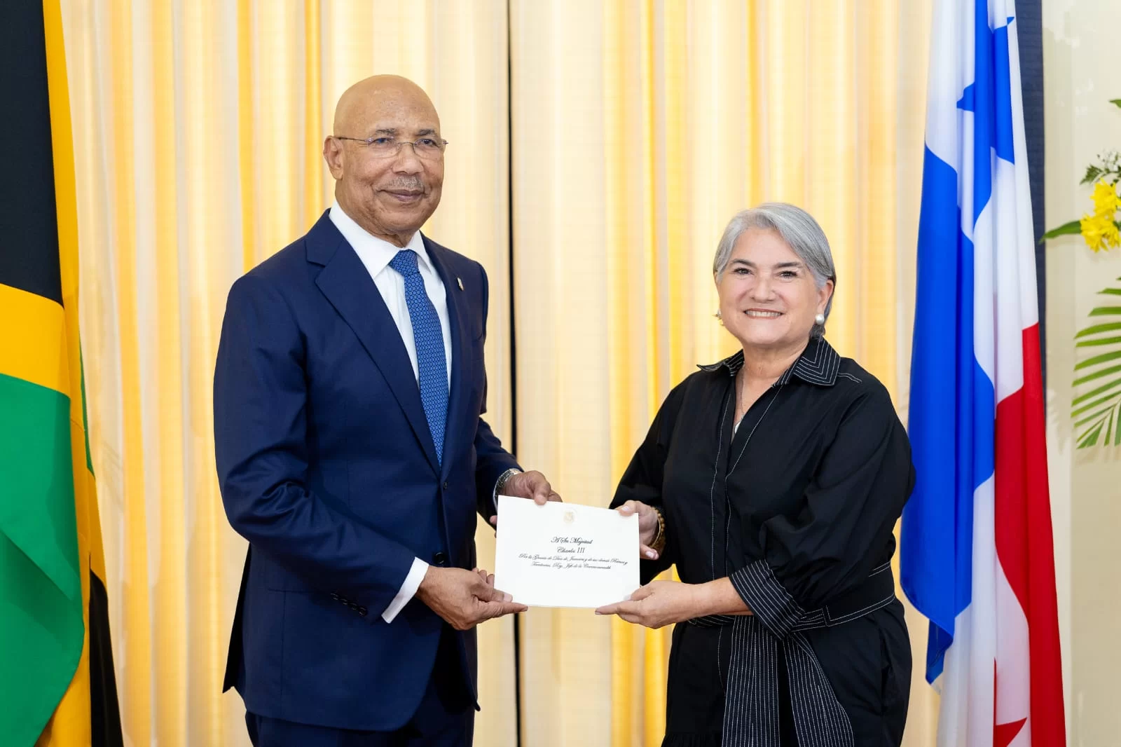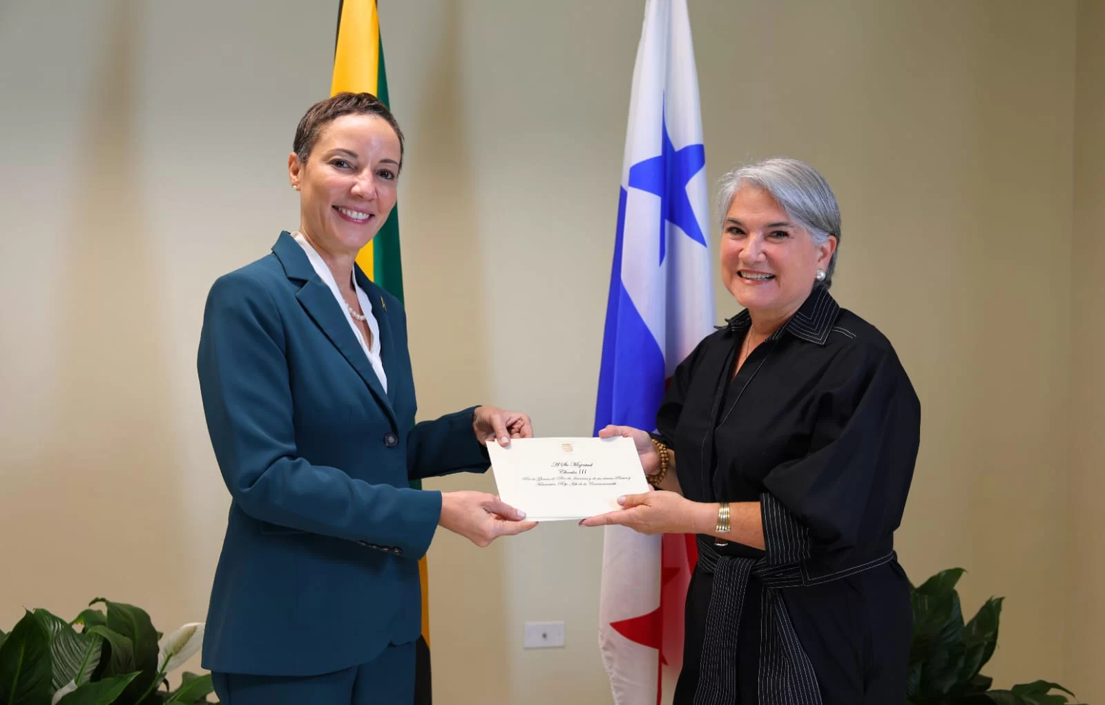 La embajadora de Panamá en Jamaica, Elida María Alcedo Guardia, presentó este martes las copias de estilo de las cartas credenciales a Kamina Johnson-Smith, ministra de Relaciones Exteriores de Jamaica.