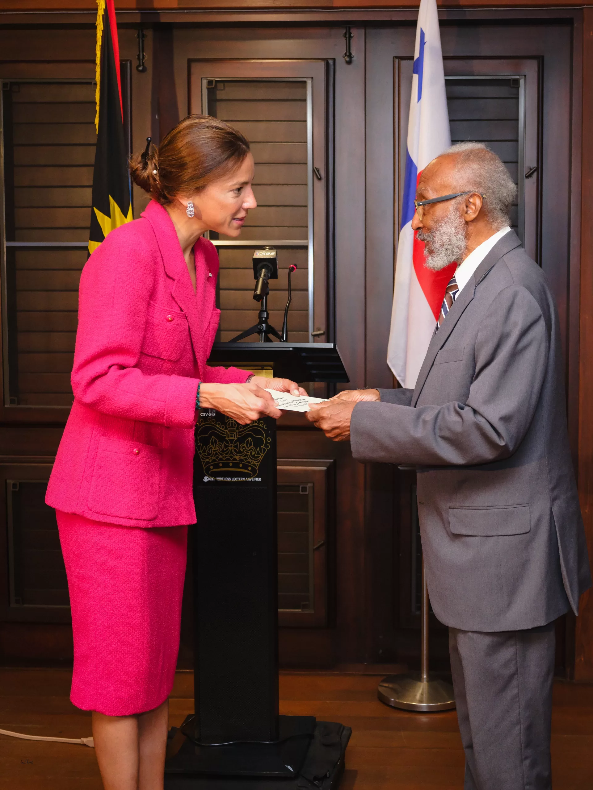 La ceremonia oficial tuvo lugar ante Sir Clare Roberts KCN KC, vicegobernador General de Antigua y Barbuda, a quien la embajadora Delgado transmitió los saludos de José Raúl Mulino, presidente de la República de Panamá, y de Javier Martínez-Acha, ministro de Relaciones Exteriores.