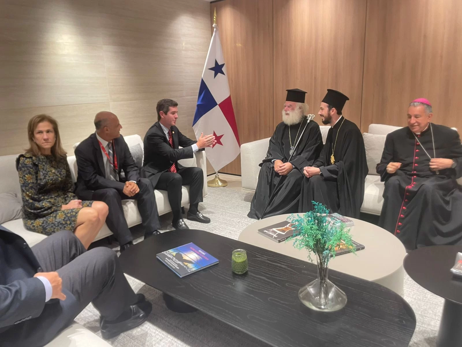 En el acto de bienvenida estuvieron presentes el viceministro Hoyos, el arzobispo Iakovos, Metropolita de México y Exarca de Centroamérica y el Caribe; monseñor José Domingo Ulloa, Arzobispo de Panamá; el protopresbítero Alejandro El Brihi, así como representantes de la comunidad griega ortodoxa en Panamá.