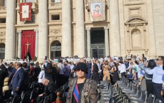 La Embajada de Panamá, representada por Su Excelencia Delia Cárdenas, participó en la celebración Eucarística con el rito de canonización de los Beatos Carlo Acutis y Pier Giorgio Frassati, presidida por el Santo Padre en la Plaza de San Pedro, el 7 de septiembre.
