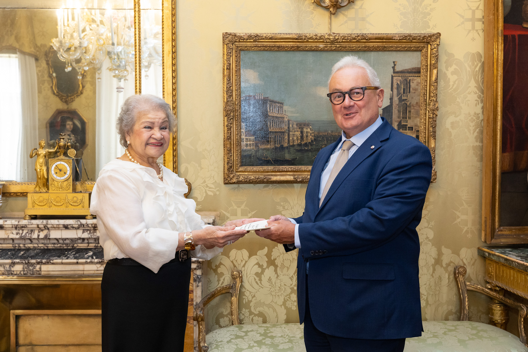 La Embajadora Delia Cardenas Christie, presentó copias de Cartas Credenciales ante el Secretario General para los Asuntos Exteriores de la Orden de Malta, S.E. el Embajador Giampaolo Cantini, acto realizado en el Palacio Magistral, con sede en Roma, Italia.