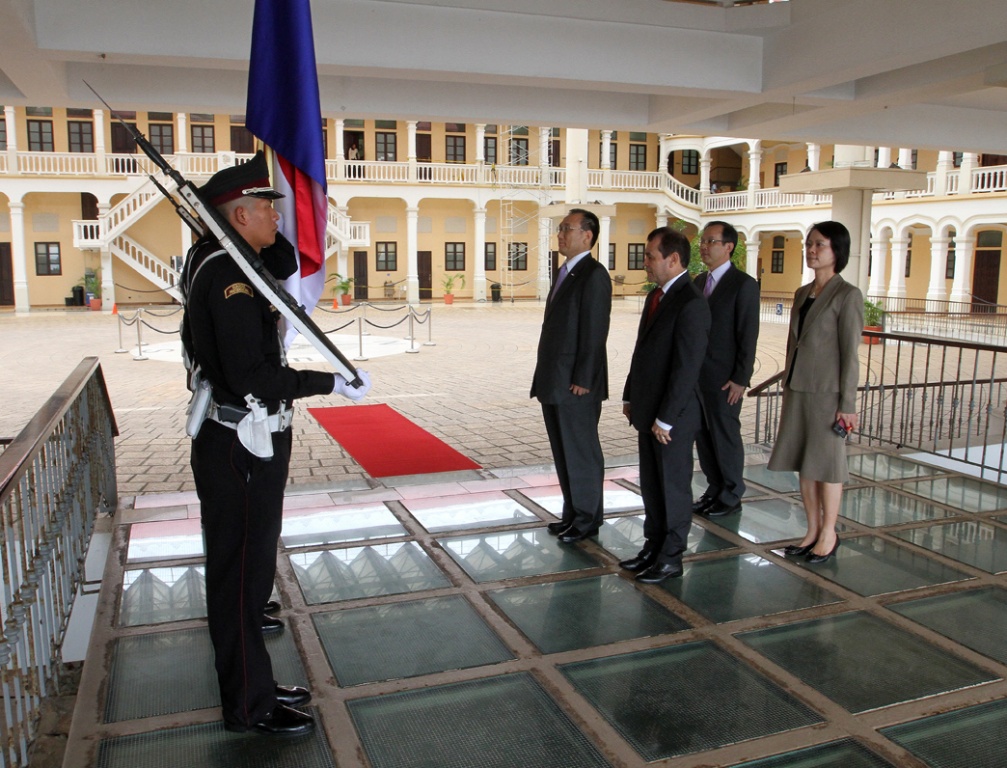 En una solemne ceremonia en el Palacio Bolívar, Casa de la Diplomacia Panameña, el Embajador Liu, fue recibido con los honores correspondientes al cargo, por personal del Protocolo y Ceremonial del Estado.