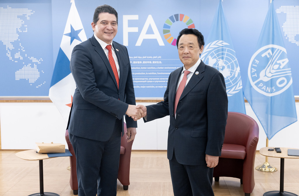 Durante el encuentro bilateral, el viceministro Pineda en nombre del Presidente Laurentino Cortizo Cohen felicitó al director en su reelección y agradeció el acompañamiento técnico de la FAO en programas gubernamentales como Estudiar sin Hambre y en la elaboración de leyes como la ley de agricultura familiar.