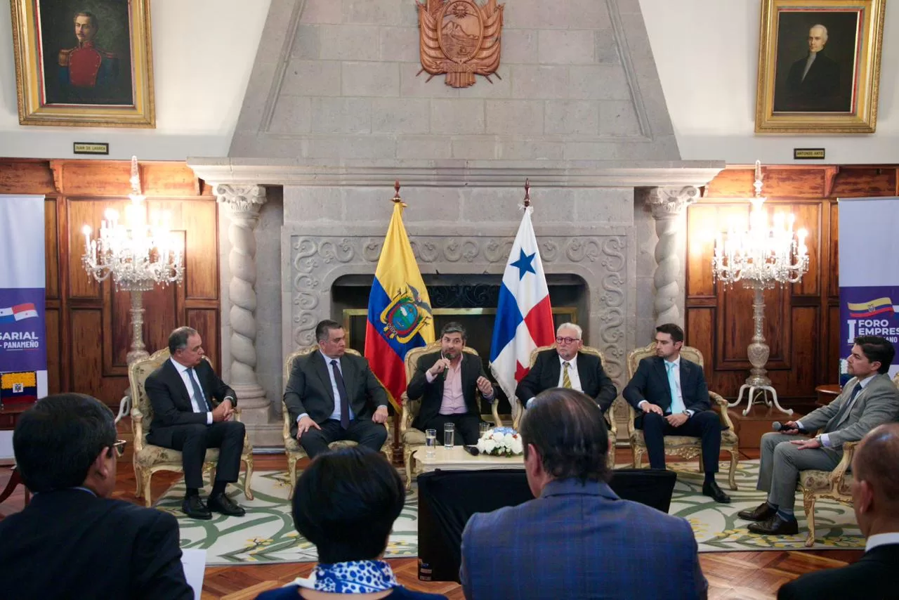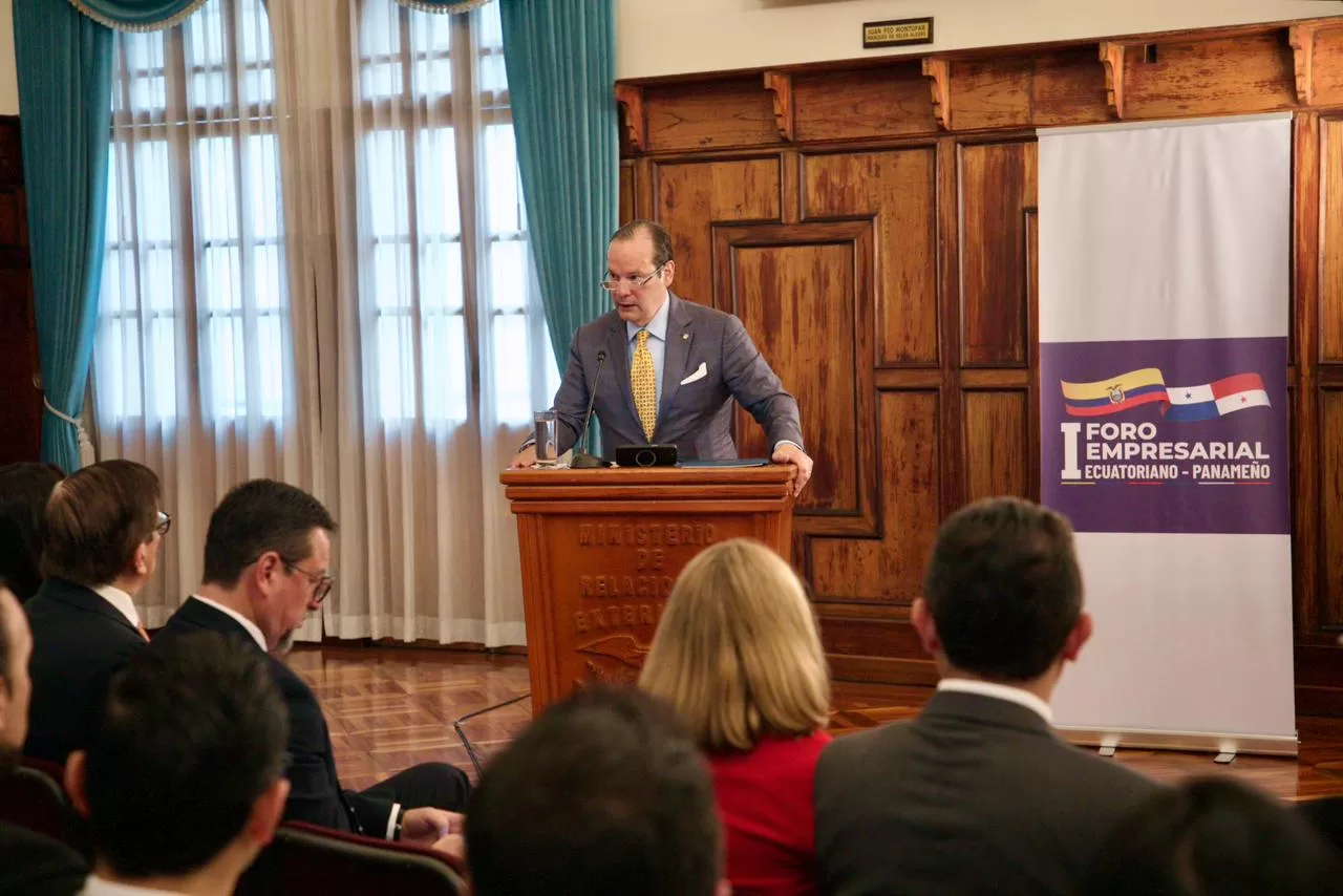 El ministro de Relaciones Exteriores, Javier Martínez-Acha Vásquez, participó en este viernes en Quito en el foro empresarial Ecuador-Panamá: Conectando visiones, construyendo oportunidades, con el objetivo de ampliar las oportunidades de colaboración y atracción de inversiones entre ambos países. El foro se desarrolló en el Palacio de Najas, sede de la cancillería ecuatoriana.