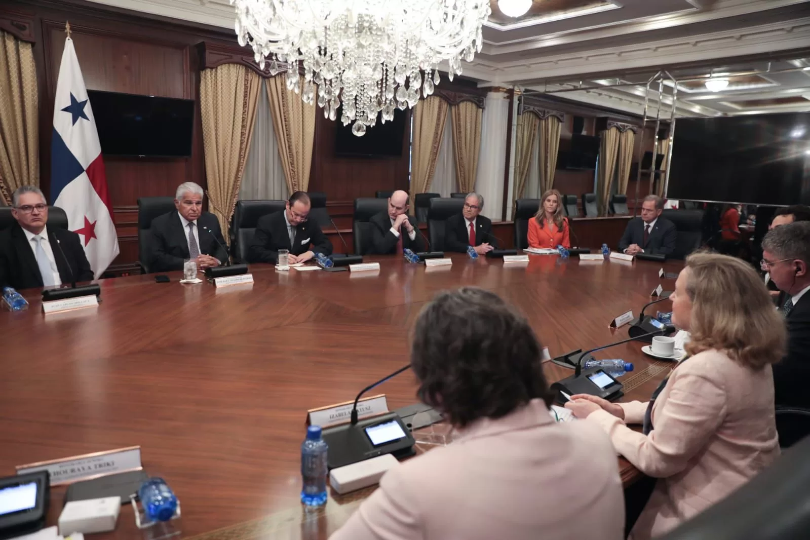El presidente de la República, José Raúl Mulino, se reunió hoy con la presidenta del Banco Europeo de Inversiones (BEI), Nadia Calviño, quien reafirmó el interés de la Unión Europea (UE) en la economía panameña. Calviño, en su primer viaje fuera de Europa al frente del BEI, destacó los logros económicos del país, señalando que, en el actual “entorno turbulento”, Panamá “es más importante que nunca para la Unión Europea”.