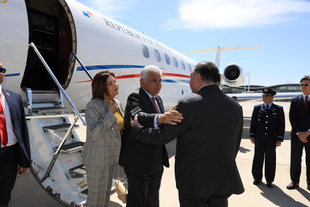 El Presidente José Raúl Mulino en compañía de la Primera Dama Maricel Cohen de Mulino y del canciller, Javier Martínez Acha, llegó a Santiago de Chile, para participar el miércoles 11 de marzo en la toma de posesión del Presidente José Antonio Kast y del nuevo gabinete presidencial, a realizarse en el Congreso Nacional de Valparaiso.
