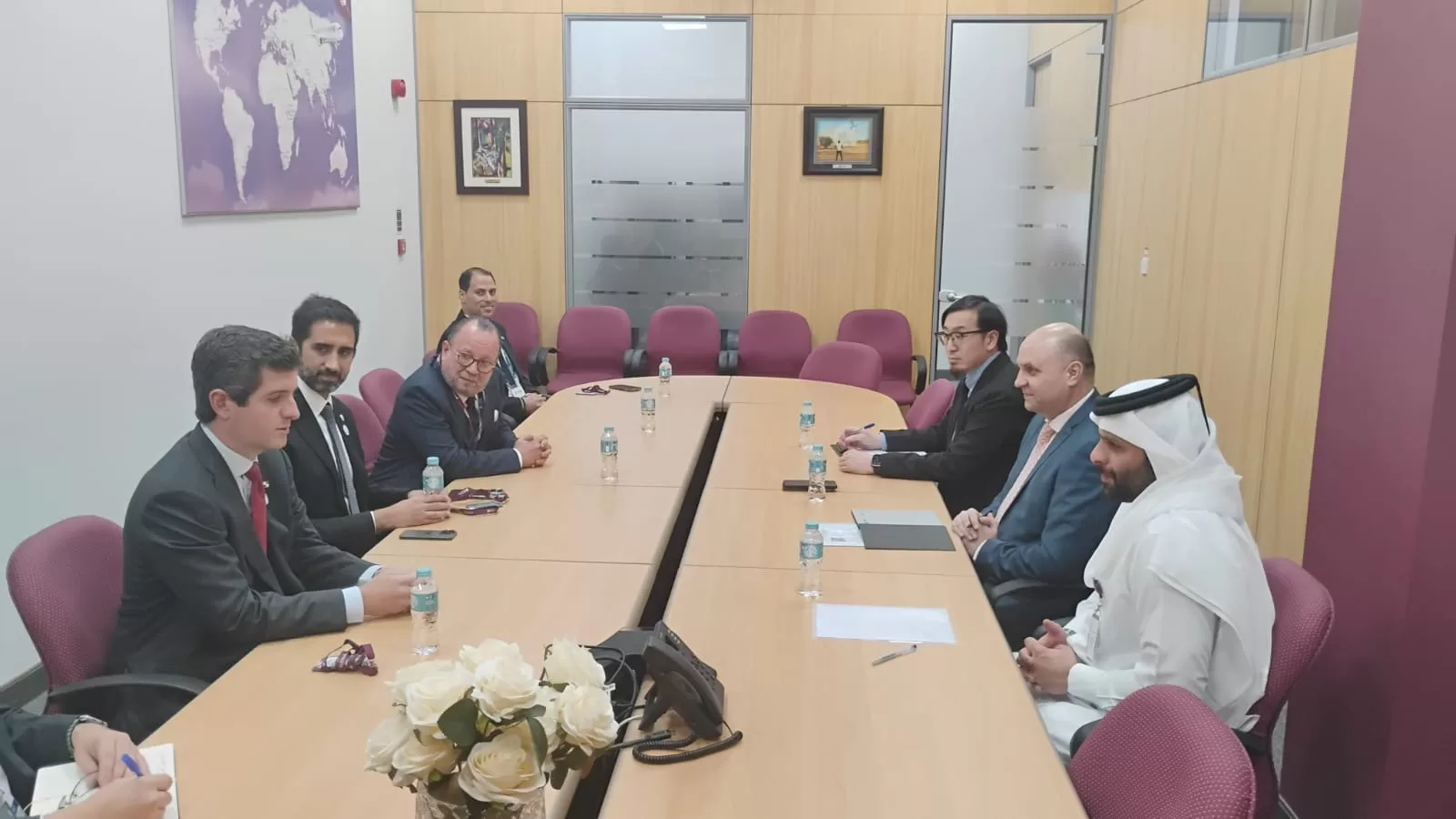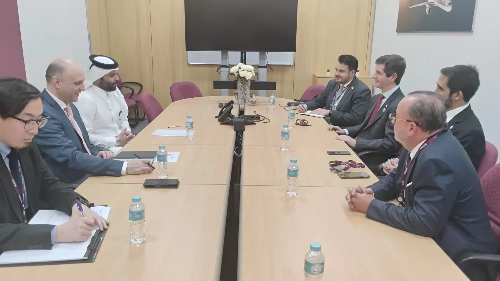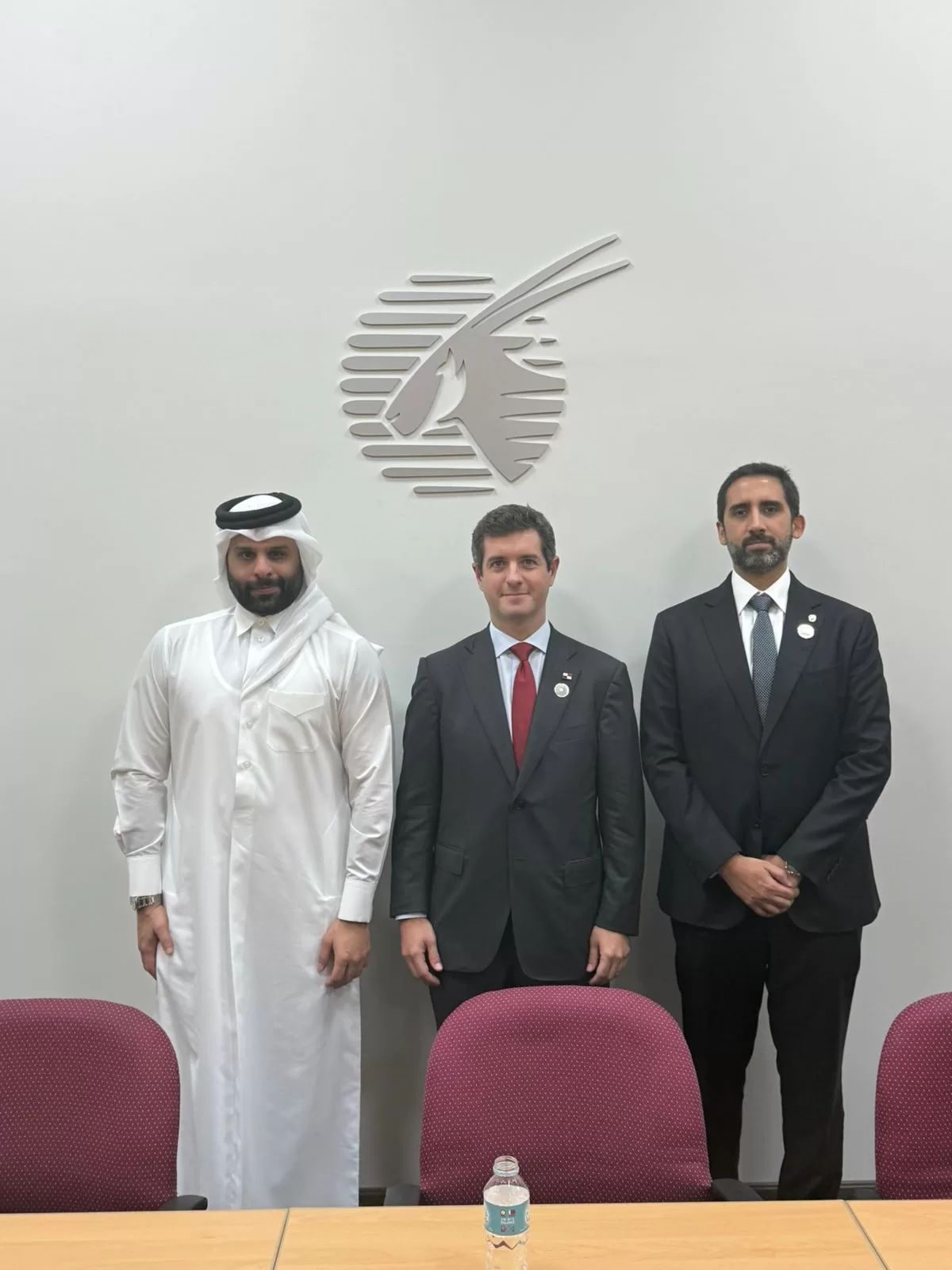 Como parte de la agenda de su visita oficial al Estado de Qatar, el viceministro de Relaciones Exteriores, Arturo A. Hoyos, sostuvo este sábado en Doha una reunión con el Jeque Jassim bin Fahad Al Thani, vicepresidente de Aeropolítica y Asuntos Corporativos de Qatar Airways.