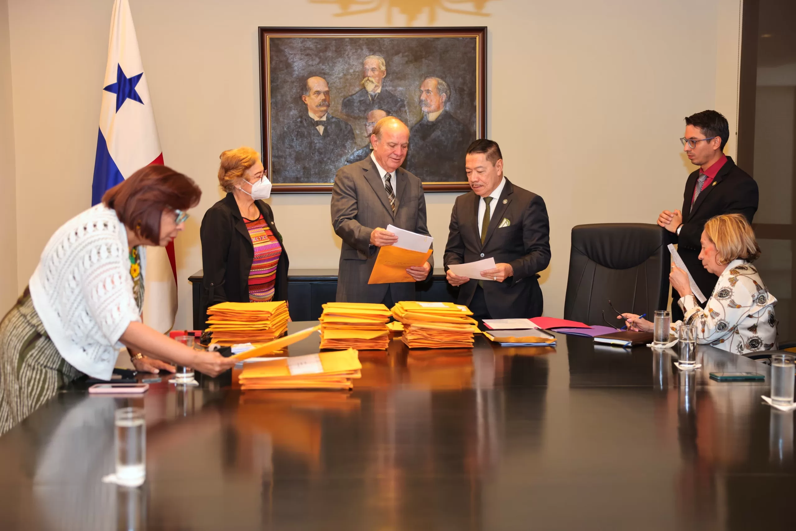 Con la presencia del viceministro encargado de Relaciones Exteriores, Alejandro Mendoza, la directora general de la Carrera Diplomática y Consular, Delia Villamonte, hizo recientemente entrega, mediante acta formal, de los ensayos del Concurso de Ascenso 2025, al profesor Jones Cooper, coordinador del Tribunal Evaluador.