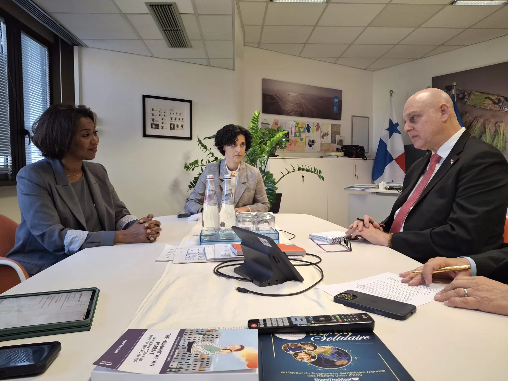 En el Programa Mundial de Alimentos, la subdirectora ejecutiva de Alianzas e Innovación, Rania Dagash Kamara, dialogó con el viceministro sobre asuntos de interés mutuo, en particular, sobre el depósito humanitario de las Naciones Unidas que funciona en Panamá y provee suministros básicos para atender las situaciones humanitarias urgentes que se producen en la región de América Latina y el Caribe.